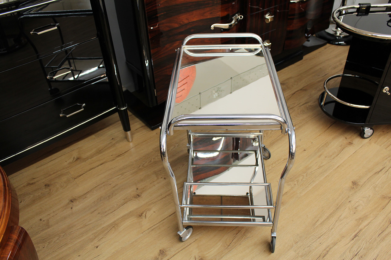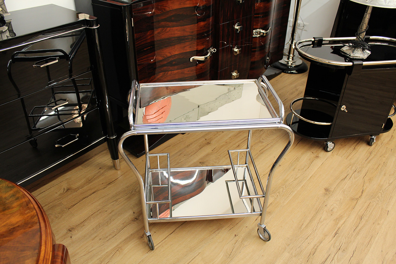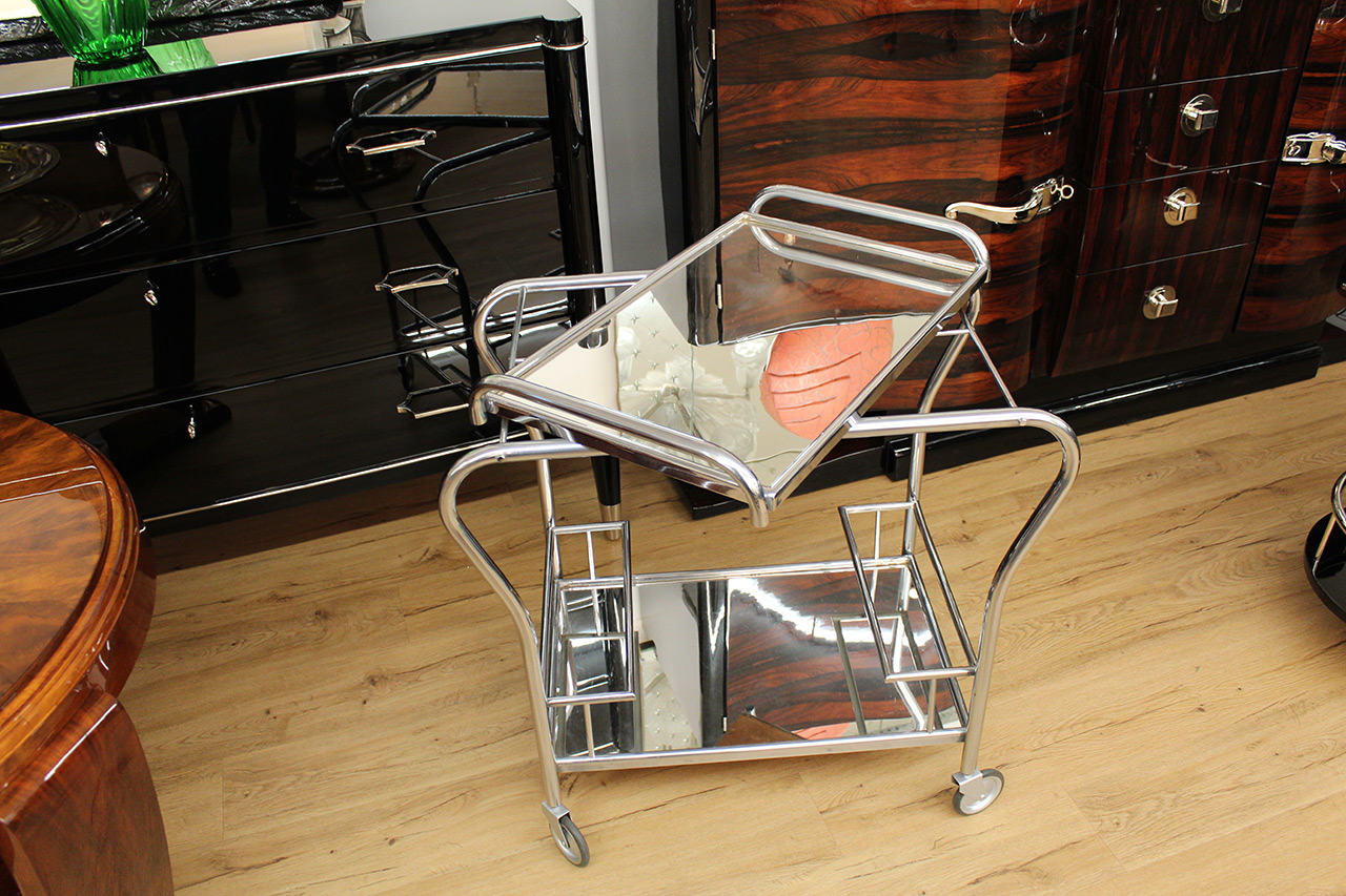 Hübscher Barwagen, original verchromt, mit Flascheneinteilung und abnehmbarem Tablett