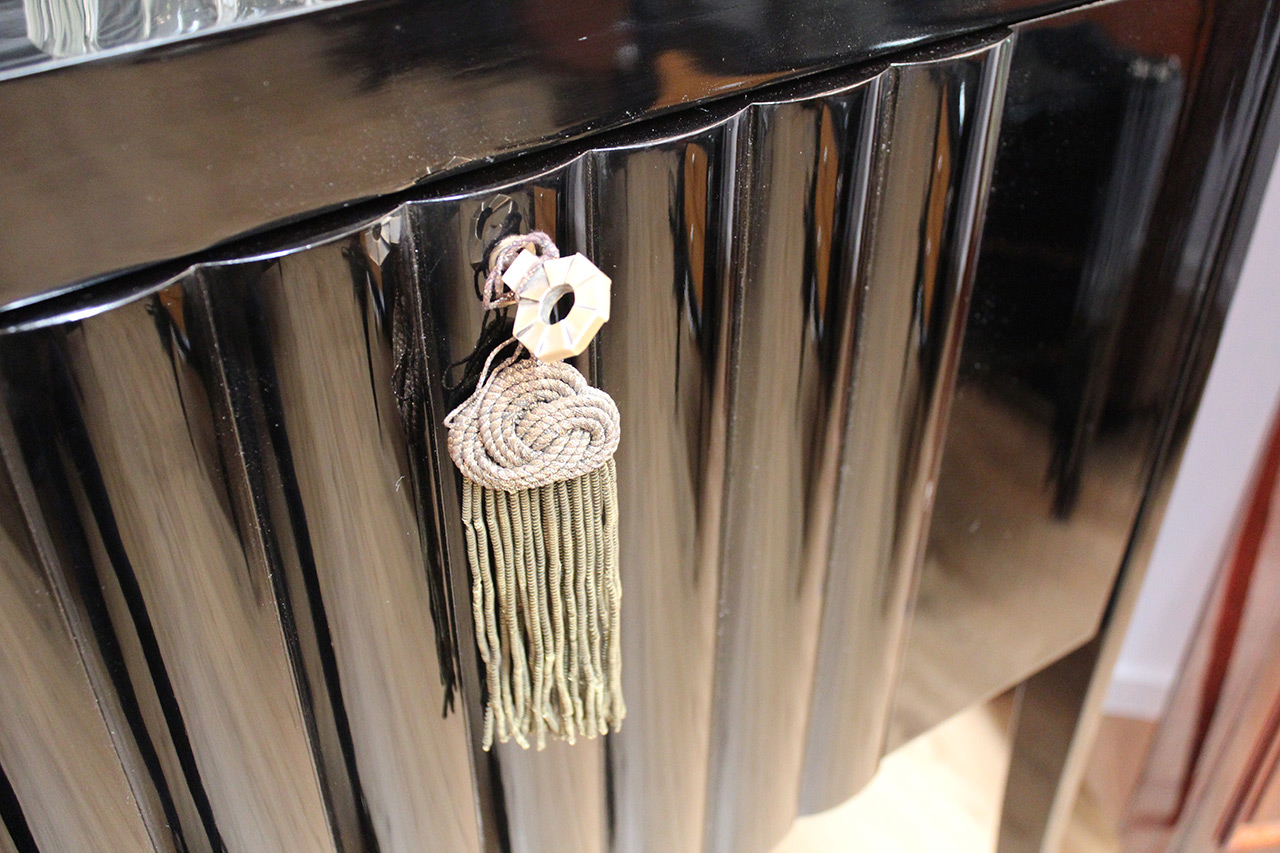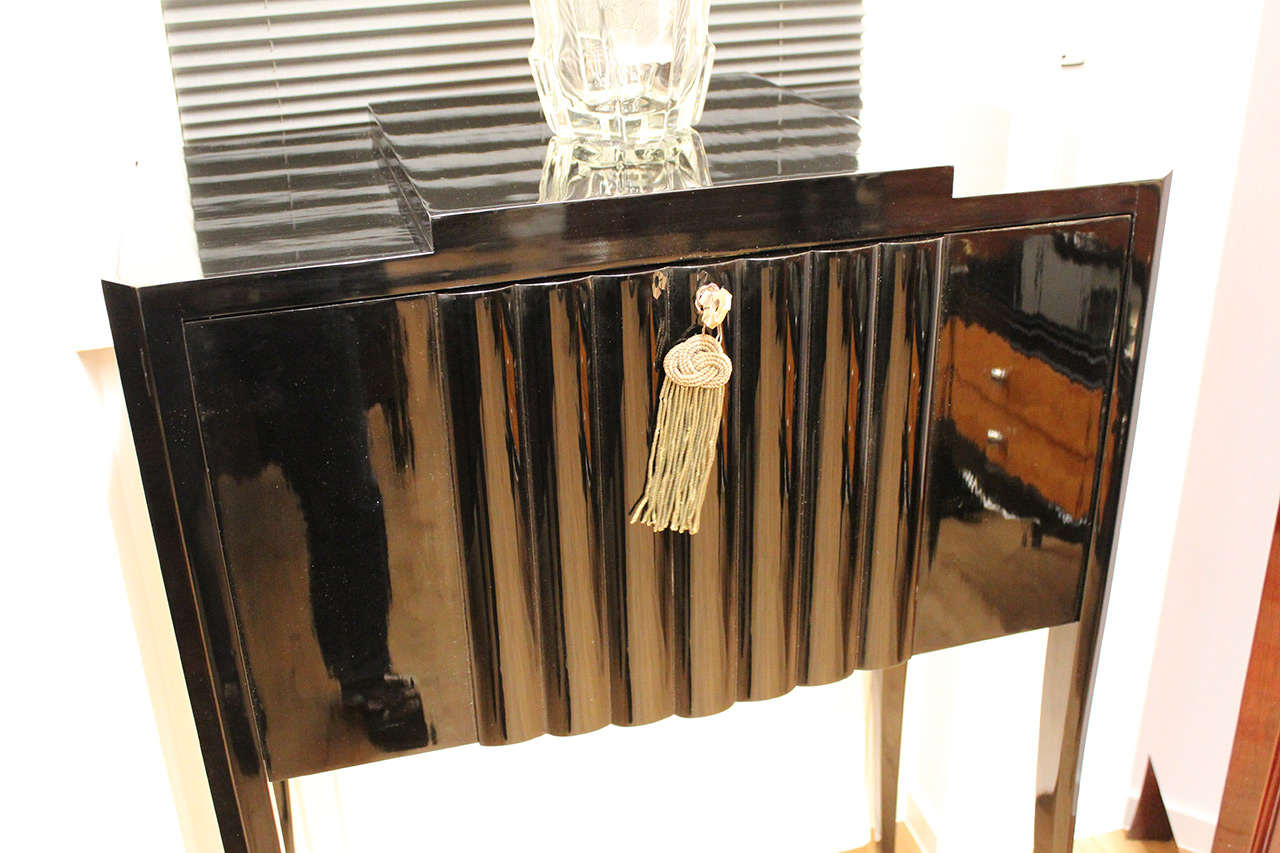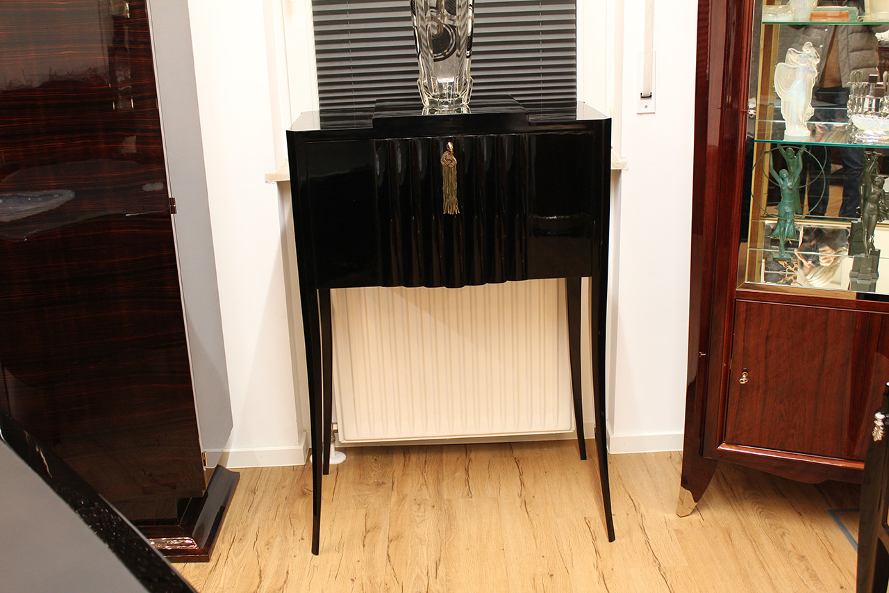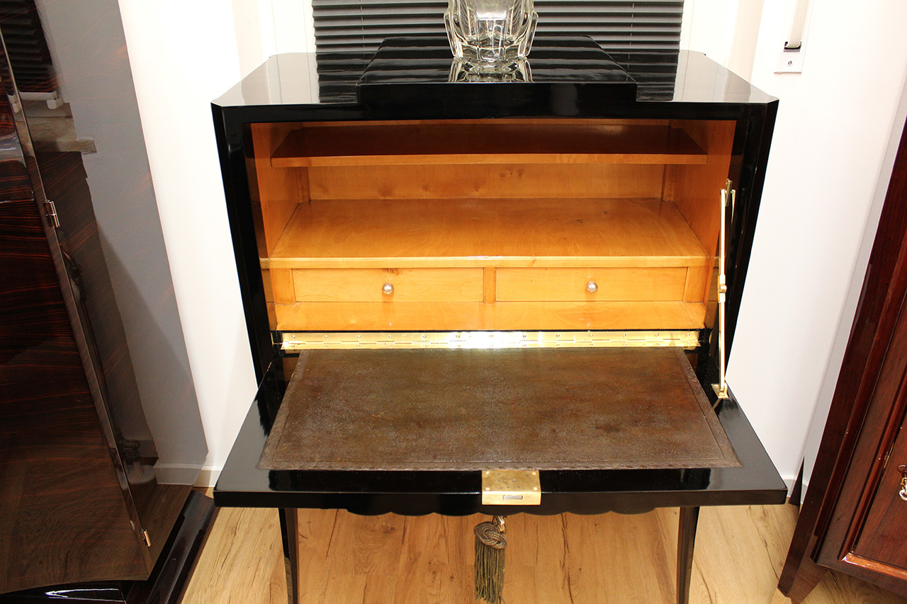 Eleganter, leichtfüßiger Sekretär, Schwarzlack, handpoliert